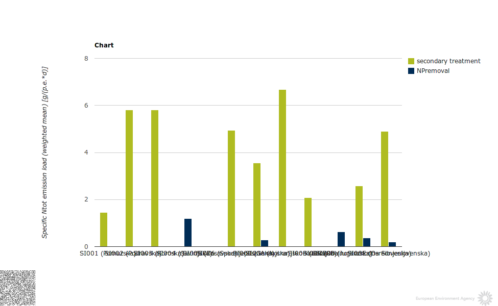 For references, please go to https://www.eea.europa.eu/data-and-maps/daviz/uwwtd-data/summary-statistics-of-specific-ntot-emission-load-from-uwwtps-in-slovenia-by-type-of-treatment-and-nuts/chart_1.png or scan the QR code.