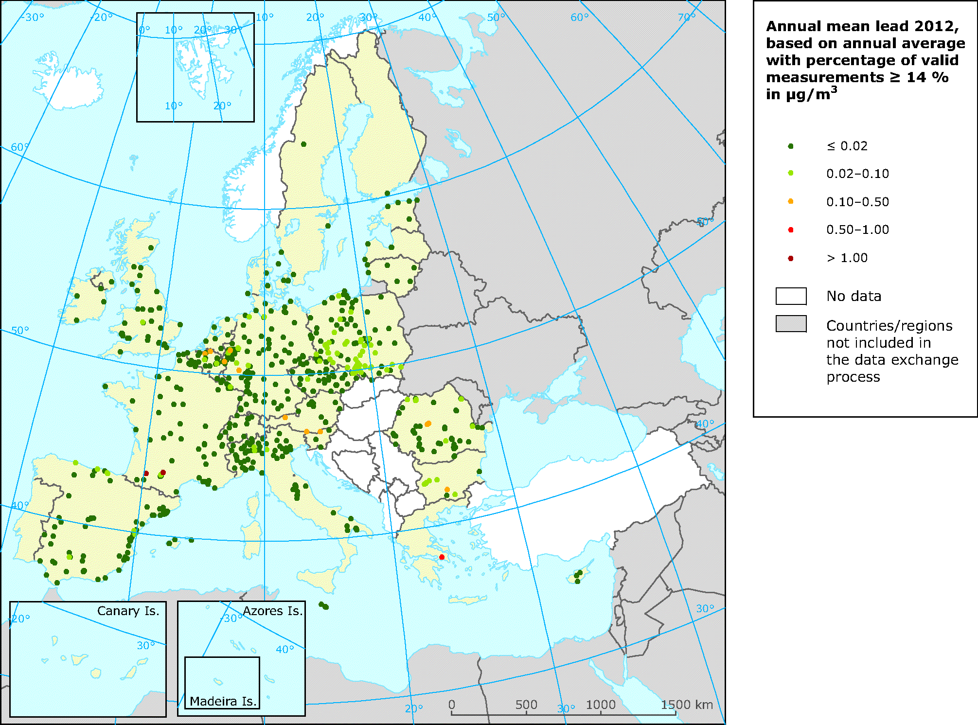 For references, please go to https://www.eea.europa.eu/data-and-maps/figures/airbase-exchange-of-information-5/pb-2012-concentration or scan the QR code.