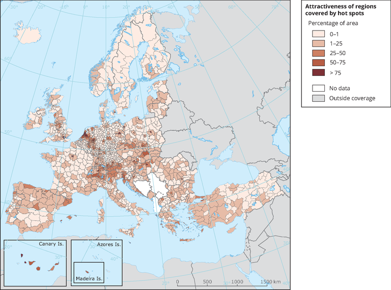 The identification of hot spots has been based on the The Getis-Ord Gi* statisti c (pronounced G-i-star) for each feature in a dataset. The resultant z-scores and p-values tell you where features with either high or low values cluster spatially. This tool works by looking at eac h feature within the context of neighboring features. A feature with a high value is interesting but may not be a statistically significant hot spot. To be a statistically significant hot spot, a feature will have a high value and be surrounded by other features with high values as well. The local sum for a feature and its neighbors is compared proportionally to the sum of all features; when the local sum is very different from the expected local sum, and that difference is too large to be the result of random chance, a statistically significant z-score results.