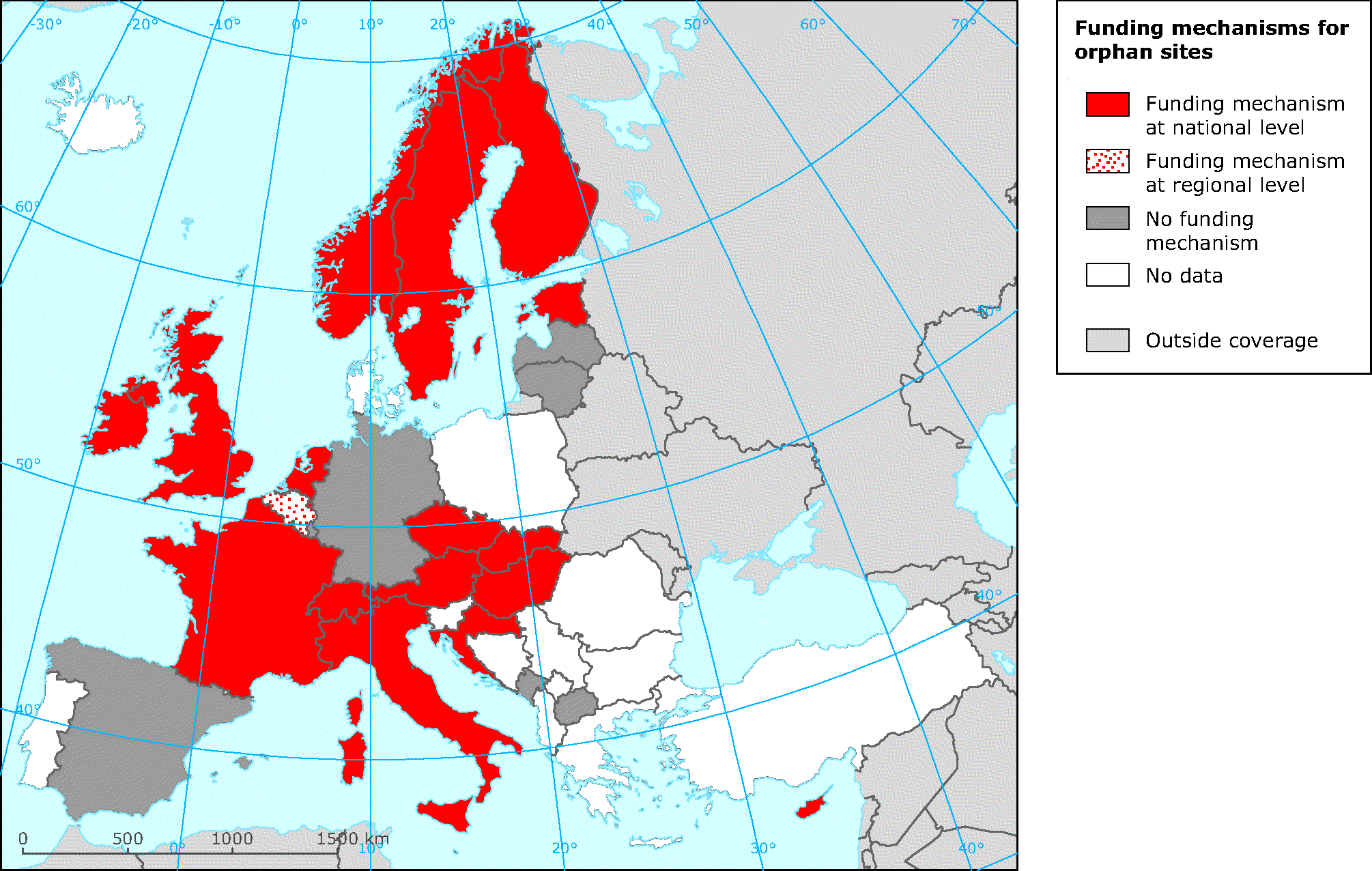 See all EU institutions and bodiesOverview of whether countries have funding mechanisms for orphan sites, and if so, at which governance level (national (N), regional (R) or no data).