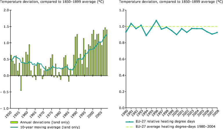 Average temperatures in Europe and relative heating degree days in EU‑27