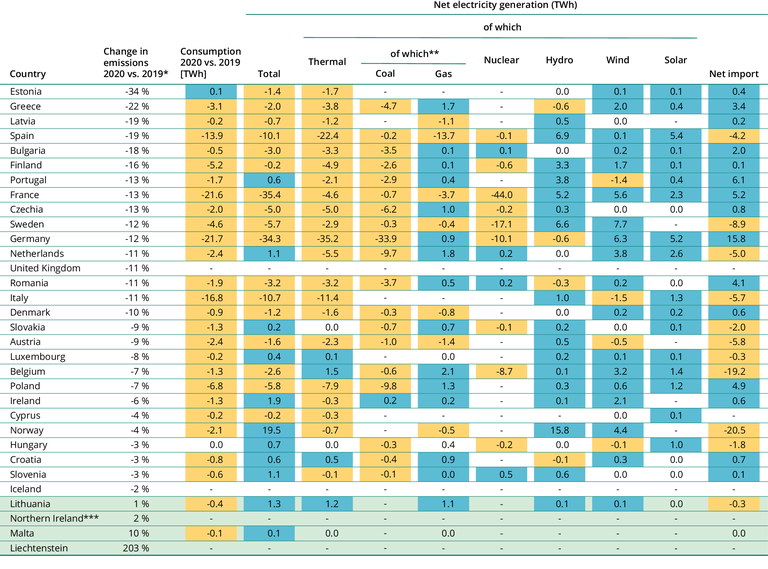 - Thermal electricity generation from other sources (e.g. oil, renewables, waste) are not shown here.