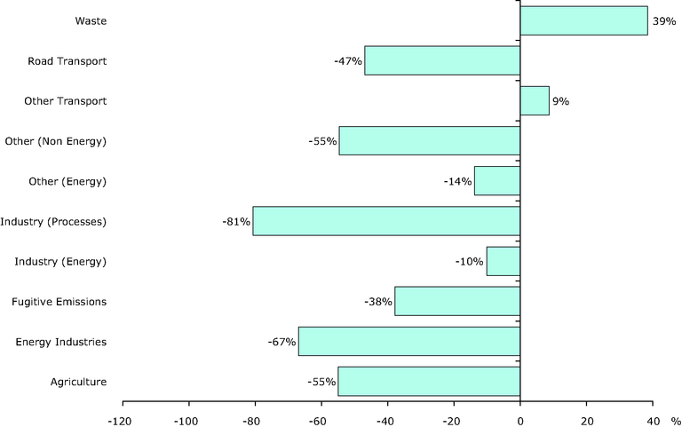 Change in polycyclic aromatic hydrocarbon emissions for each sector