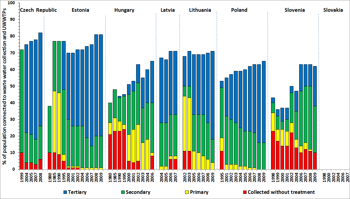 Data source: Data table: "Resident population connected to wastewater collection and treatment systems" reported to the "OECD/Eurostat Joint Questionnaire - Inland Waters-2010", (version as of June 26, 2013). Data are available at Eurostat data table.