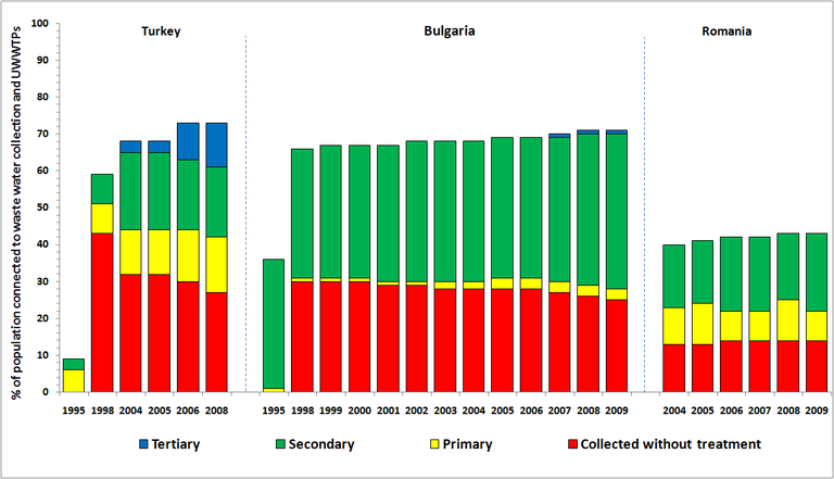 Data source: Data table: "Resident population connected to wastewater collection and treatment systems" reported to the "OECD/Eurostat Joint Questionnaire - Inland Waters-2010", (version as of June 10, 2012). Data are available at Eurostat data table.