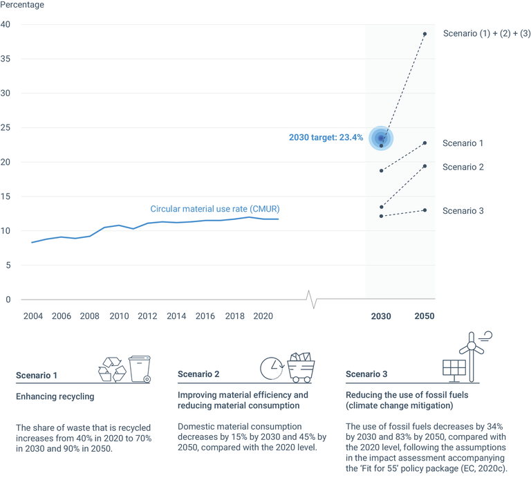 See all EU institutions and bodiesCircular material use rate under different exploratory scenarios.