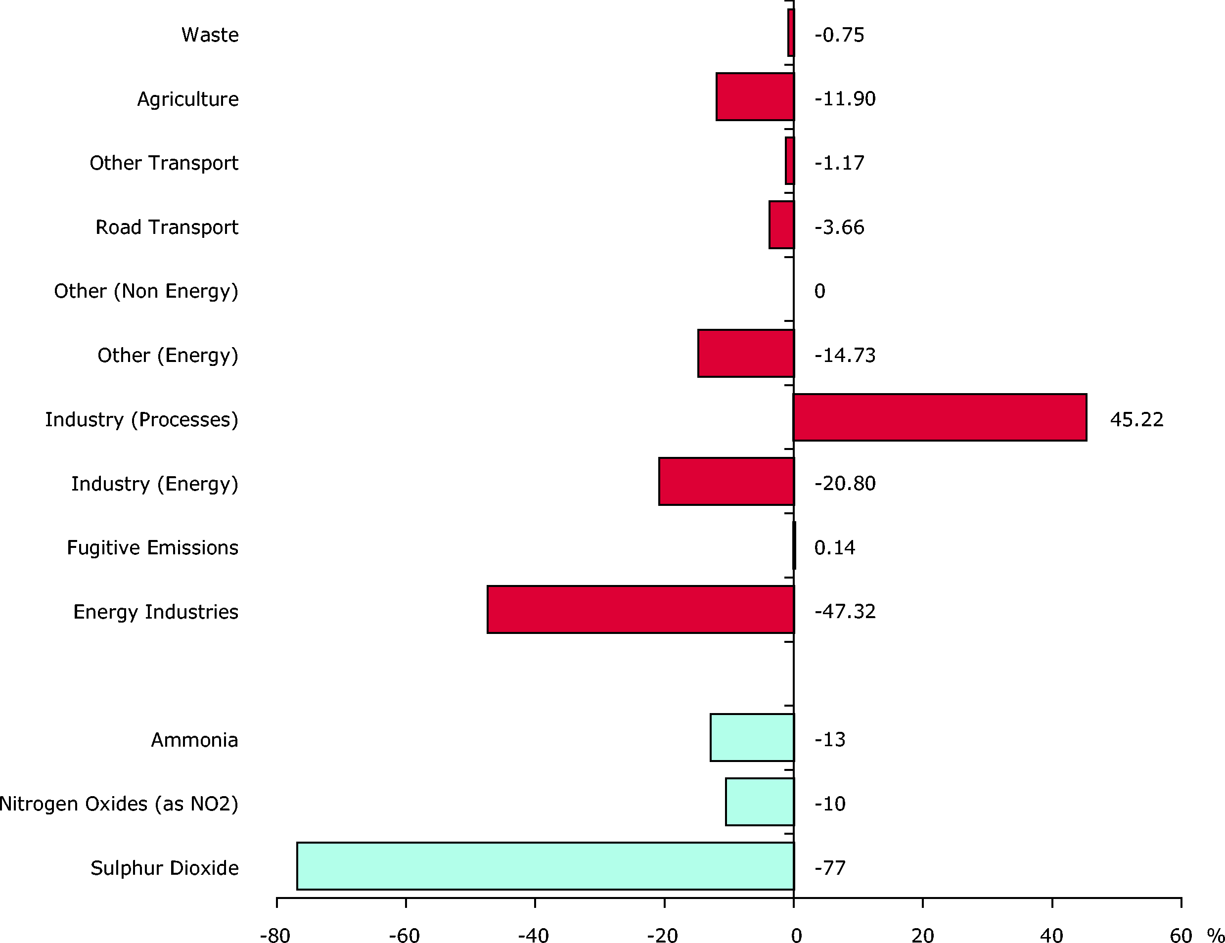 See all EU institutions and bodiesContribution to change plots show the contribution to the total emission change between 1990-2005 made by a specified sector/ pollutant