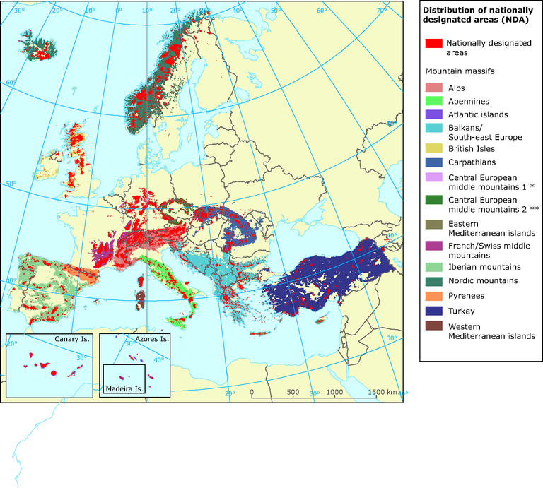 See all EU institutions and bodiesThe map shows the National Designated Areas within each European Mountain Massif