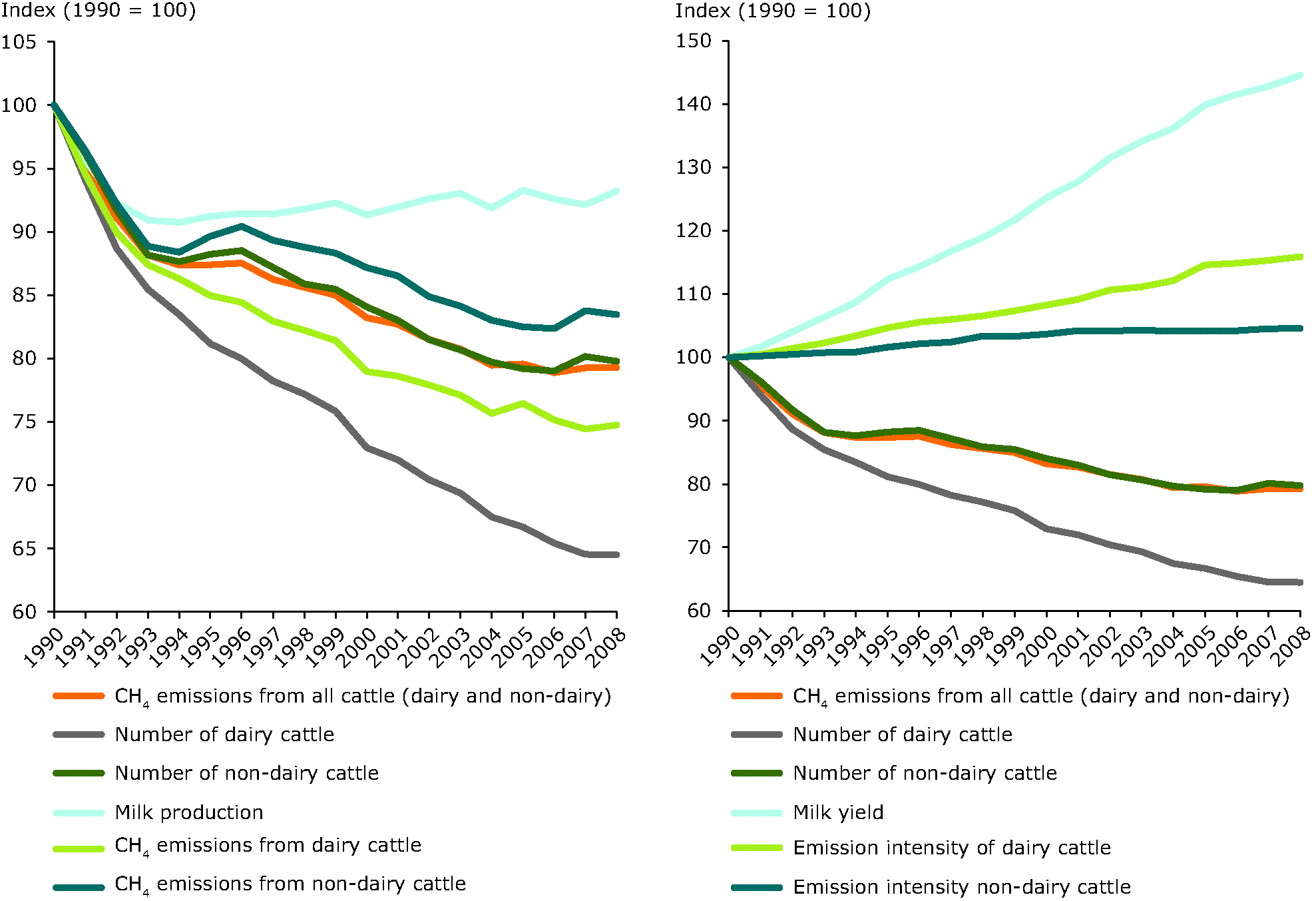 Drivers of CH4 emissions from enteric fermentation of cattle in the EU, 1990–2008