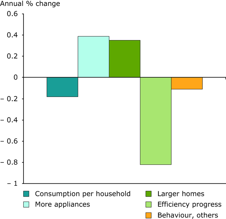Drivers of the change in average annual energy consumption per household in the EU-15 from 1990 to 2004