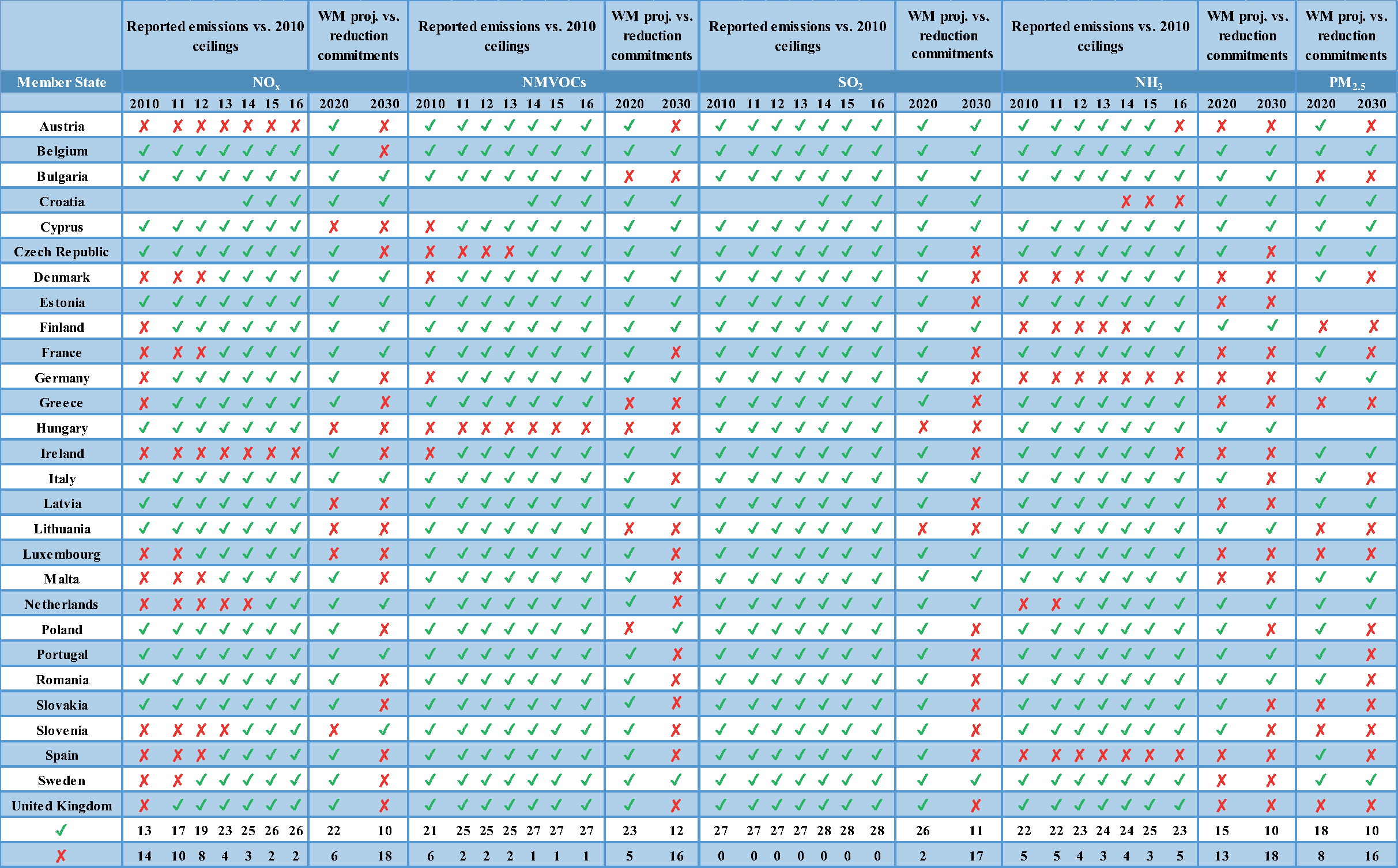 'Black check mark' indicates that the emission ceiling or reduction commitment has been, or is anticipated to be, attained. The NEC Directive does not include a 2010 ceiling for PM2.5.