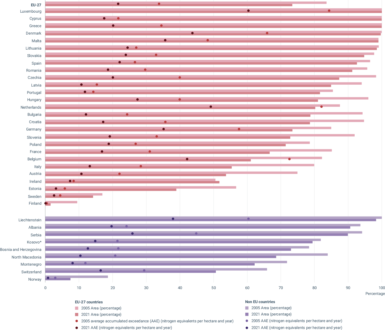 The graph shows the ecosystem area at risk of eutrophication for 2021