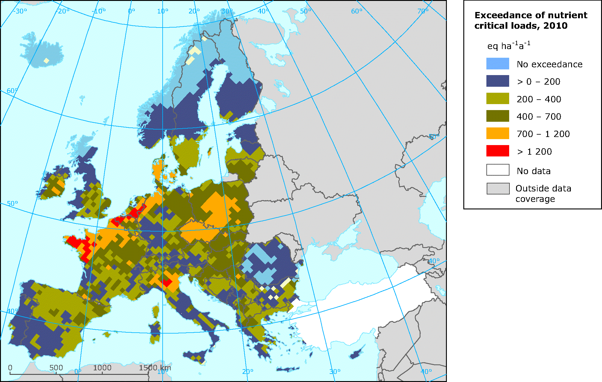 For references, please go to https://www.eea.europa.eu/data-and-maps/figures/exceedance-of-the-critical-loads-for-eutrophication-in-europe-as-average-accumulated-exceedances-1/exceedances-of-critical-loads-for or scan the QR code.