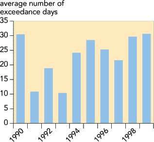 The threshold for ground level ozone is currently set at eight hours at a mean concentration of 110?3