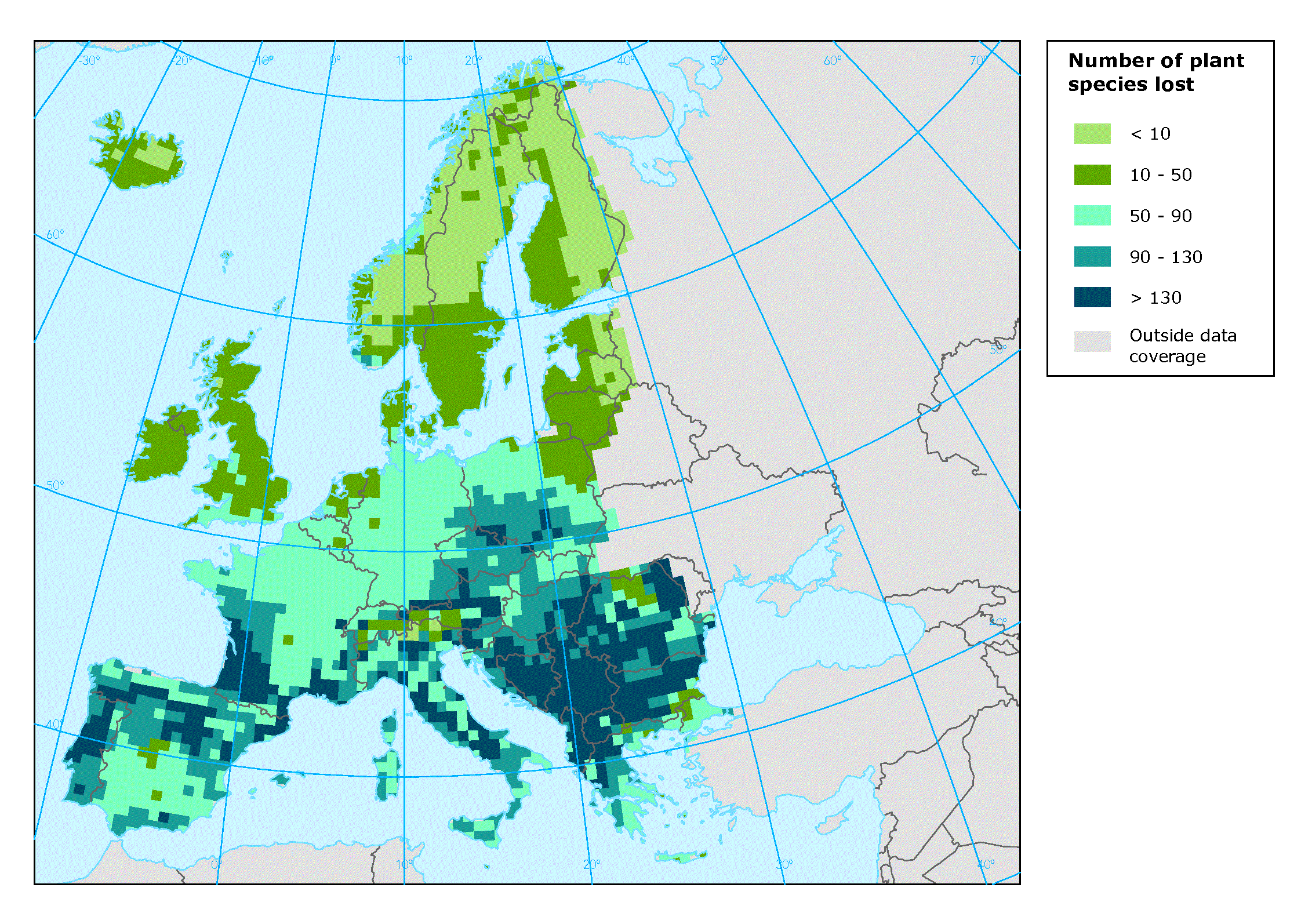 For references, please go to https://www.eea.europa.eu/data-and-maps/figures/impact-of-climate-change-on-number-of-plant-species-in-2100-under-the-baseline-scenario or scan the QR code.