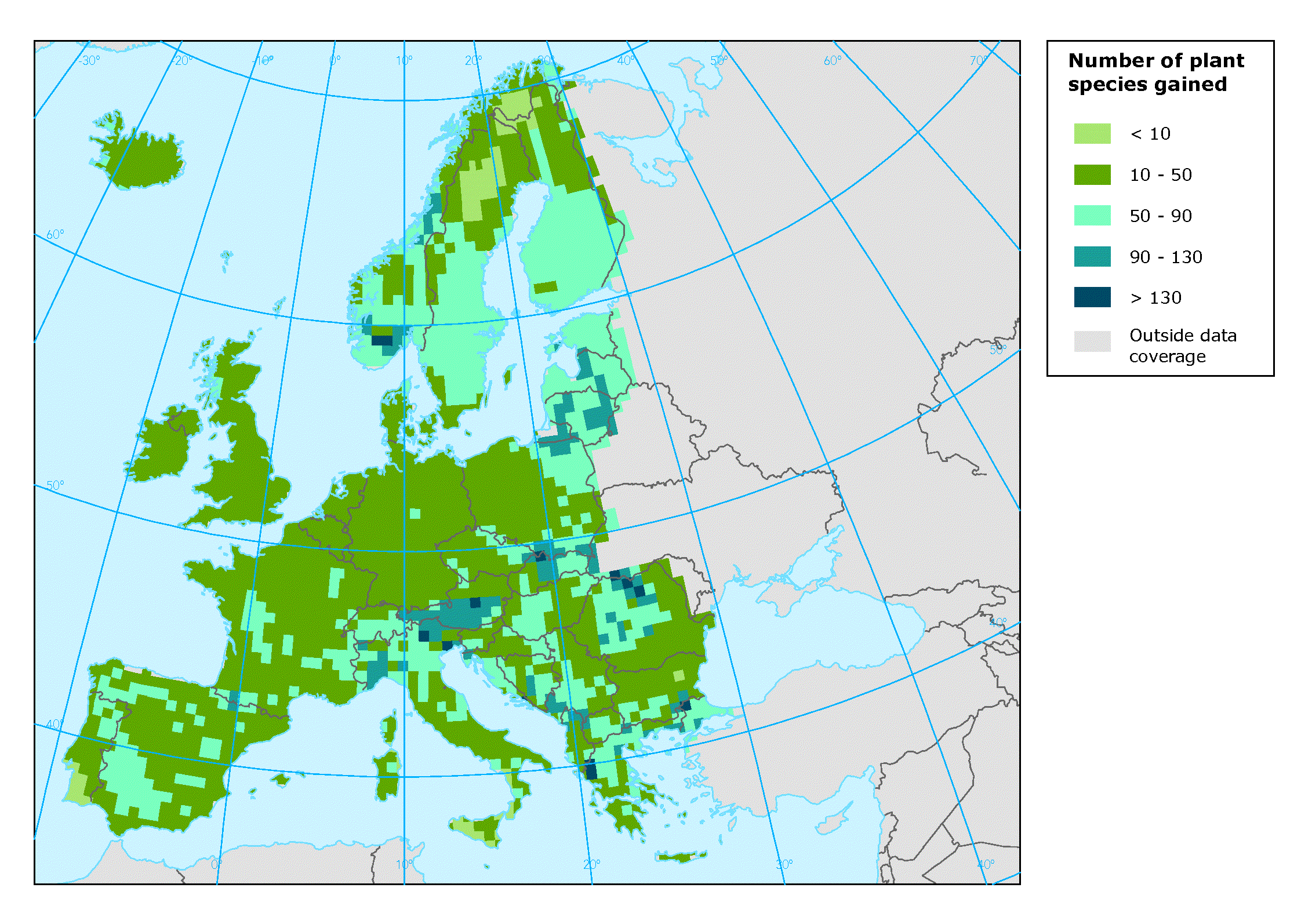 For references, please go to https://www.eea.europa.eu/data-and-maps/figures/impact-of-climate-change-on-number-of-plant-species-in-2100-under-the-low-ghg-emissions-scenario or scan the QR code.