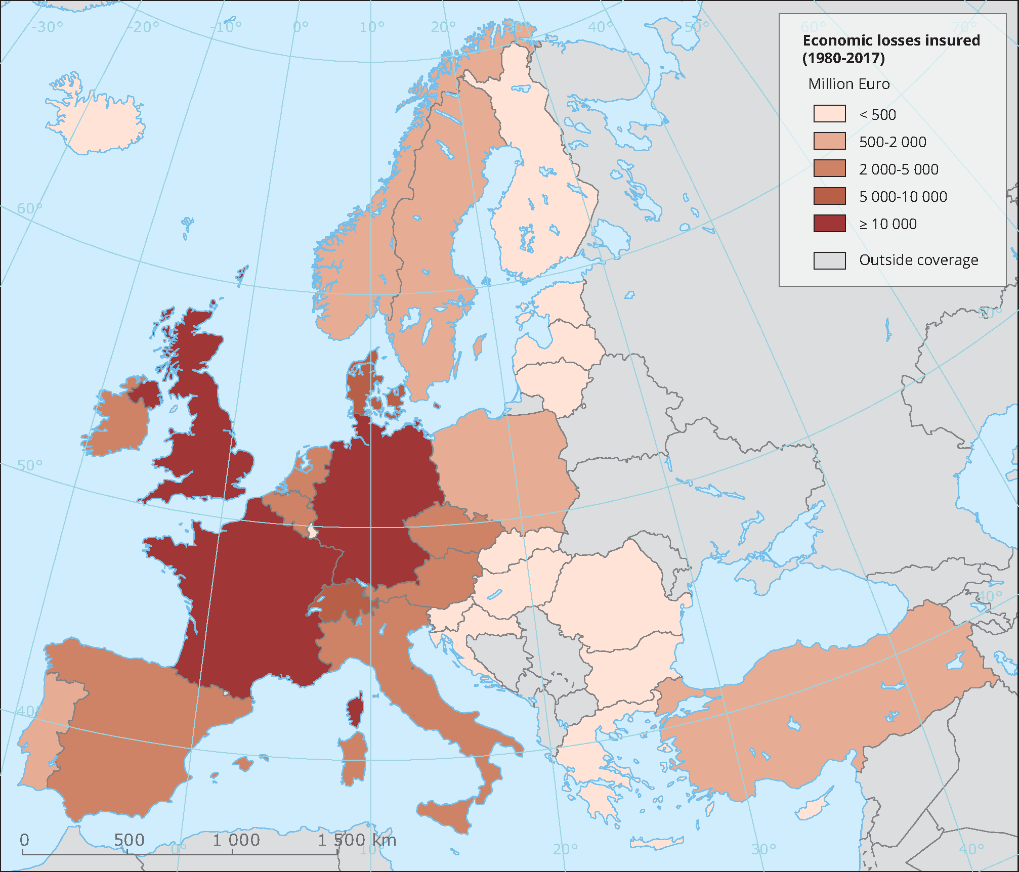 For the period 1980-2017, in Euro 2017 prices, based on the damage records from the NatCatSERVICE of Munich Re and the EUROSTAT structural indicators.