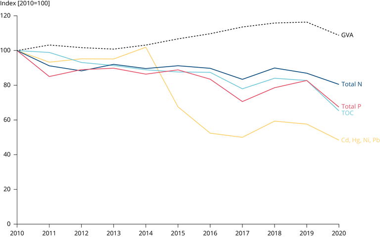 GVA, gross value added; TOC, total organic carbon; Total N, total nitrogen; Total P, total phosphorous; Cd, cadmium; Hg, mercury; Ni, nickel; Pb, lead.