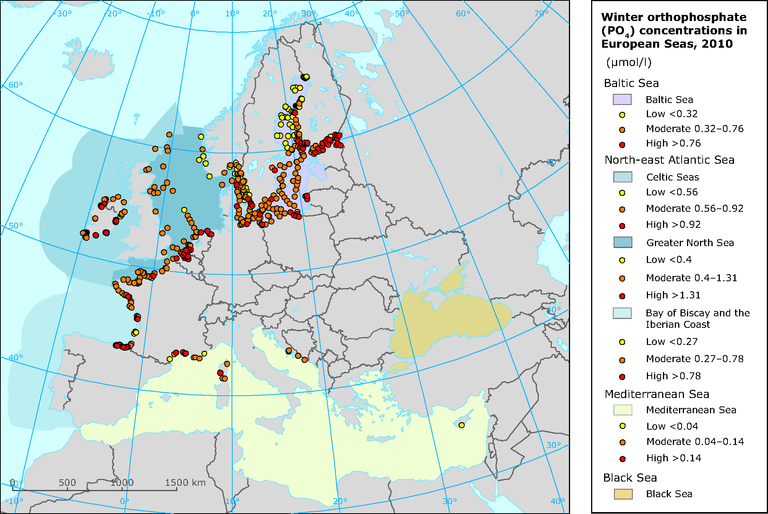 Based on the EIONET WISE SoE TCM data reported to EEA. In 2010, data suitable for the indicator were only reported from very few stations in the Mediterranean and from no stations in the Black Sea.