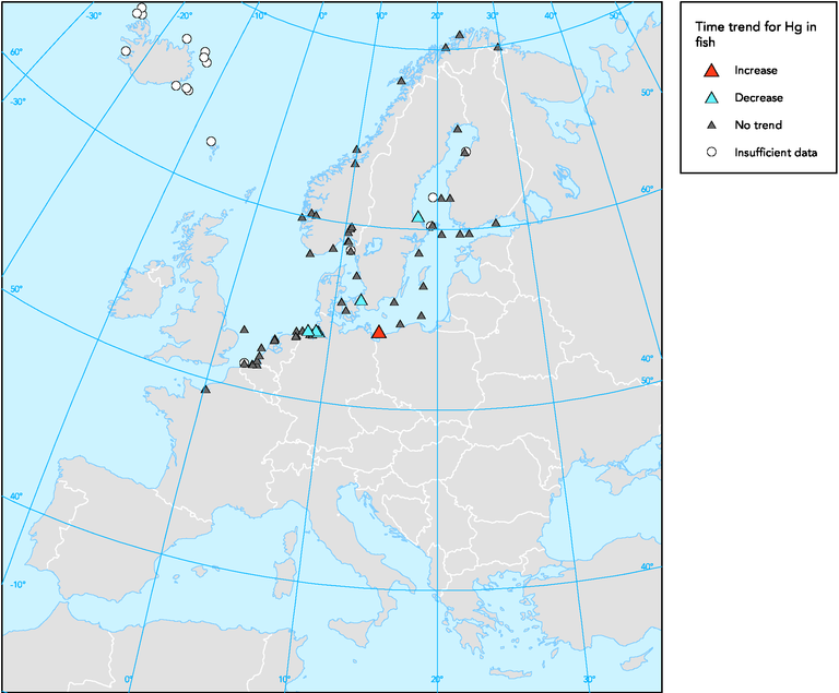 See all EU institutions and bodiesMercury (Hg) time trend in muscle of cod, herring and flounder, 1986-1999.