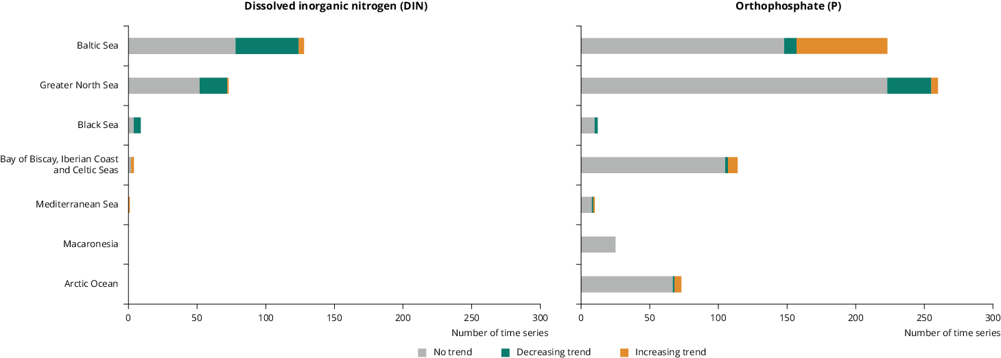 - Trends in concentrations of the nutrients, nitrogen (dissolved inorganic nitrogen — DIN) and phosphorus (orthophosphate), in the upper 10m of the water column in European seas during the season of low phytoplankton growth (SLPG) are shown for the period 1980-2019.
