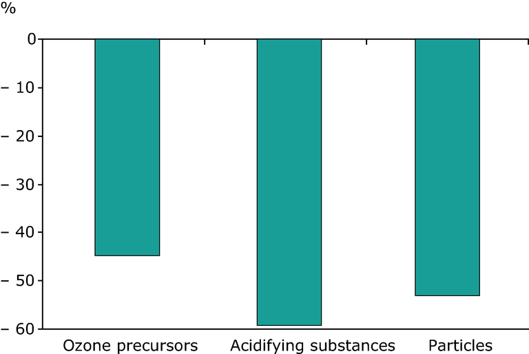 See all EU institutions and bodiesThe change in particulate matter includes emissions of both primary and secondary particulate-forming pollutants (the fraction of sulphur dioxide SO2, nitrogen oxides NOX and ammonia NH3 which, as a result of photo-chemical reactions in the atmosphere, transform into particulate matter with a diameter of 10 ¼m or less)