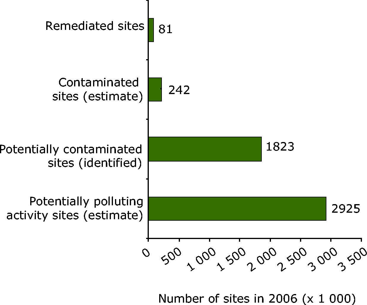 The graphs shows the status of identification and clean‑up of contaminated sites in Europe as reported to the European Environment Agency through the Eionet priority data flows on contaminated sites. While trends vary across Europe, it is clear that the remediation of contaminated sites is still a significant undertaking.