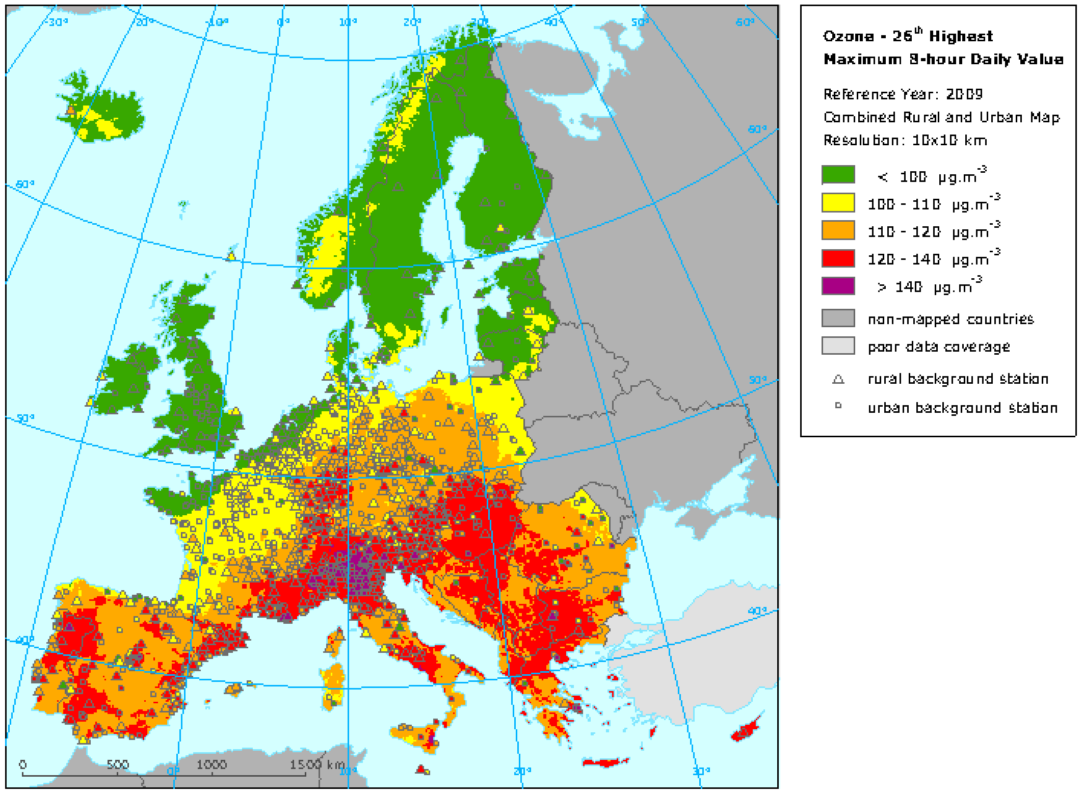 Ozone 26th highest maximum 8-hour daily value, 2009