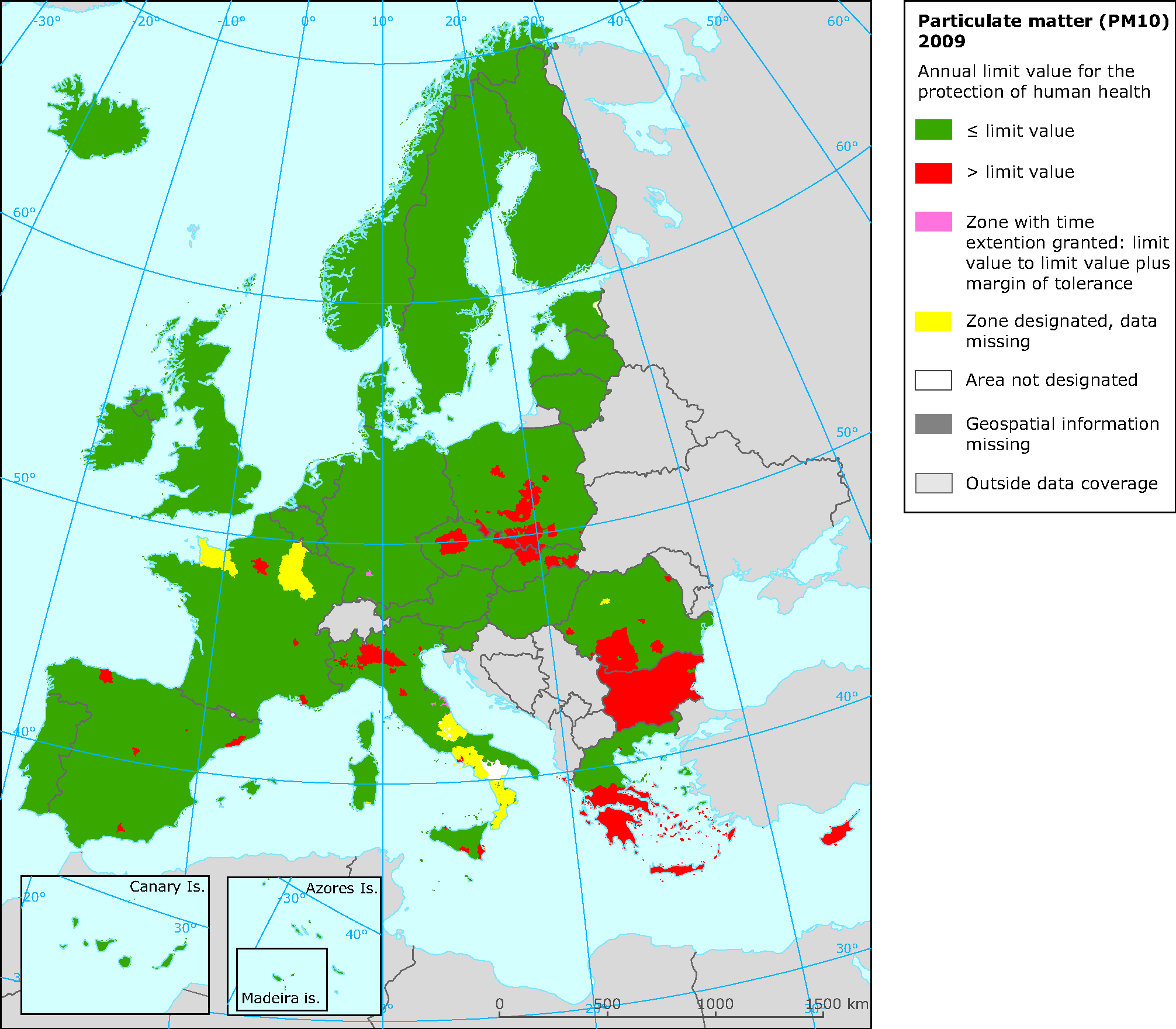 For references, please go to https://www.eea.europa.eu/data-and-maps/figures/particulate-matter-pm10-annual-limit-value-for-the-protection-of-human-health-3/particulate-matter-pm10-annual-2007-update or scan the QR code.