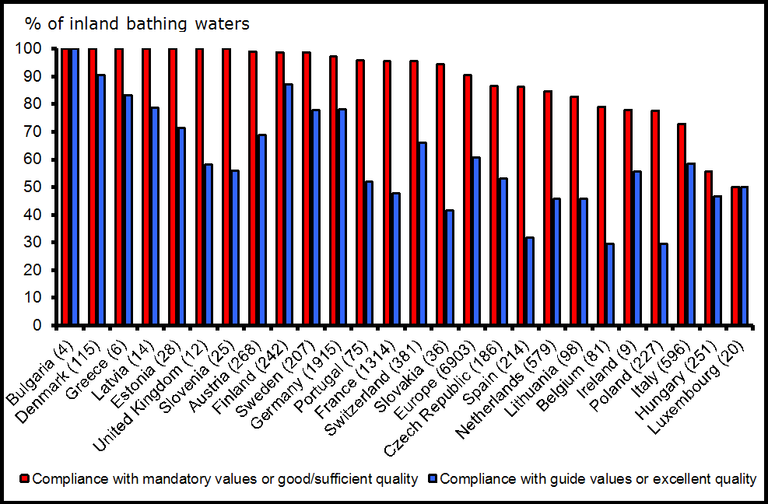 For references, please go to https://www.eea.europa.eu/data-and-maps/figures/percentage-of-eu-inland-bathing-waters-complying-with-mandatory-standards-and-meeting-guide-levels-of-the-bathing-waters-directive-for-the-year-2006-by-country-2 or scan the QR code.