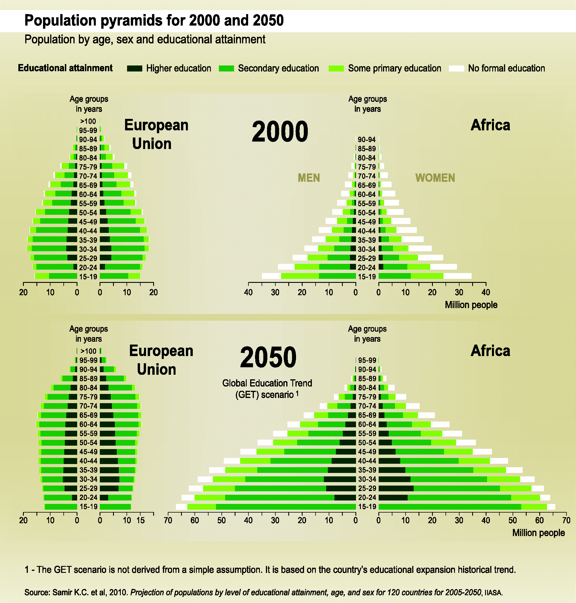 See all EU institutions and bodiesComparison between the year 2000 and projected 2050 population by age, sex and educational attainment for Africa and the European Union