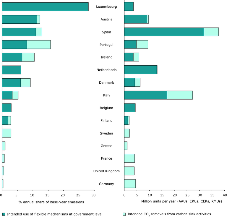 The Kyoto mechanism data presented here are based on information officially reported by Member States, which does not necessarily include all known sales and purchases of AAUs under international emission trading.