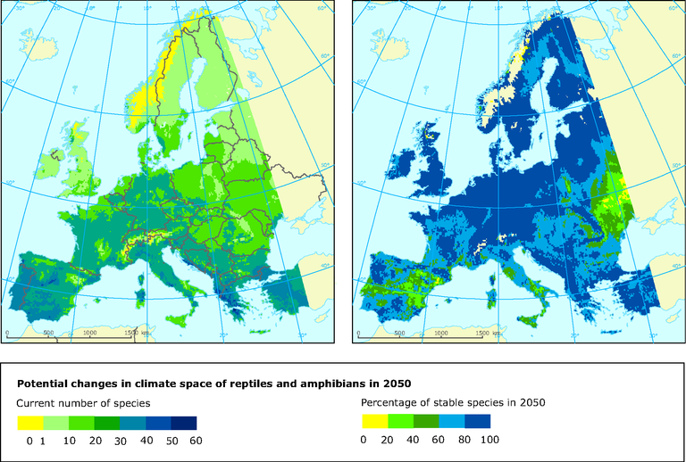 For references, please go to https://www.eea.europa.eu/data-and-maps/figures/projected-impact-of-climate-change-on-the-potential-distribution-of-reptiles-and-amphibians-in-2050 or scan the QR code.