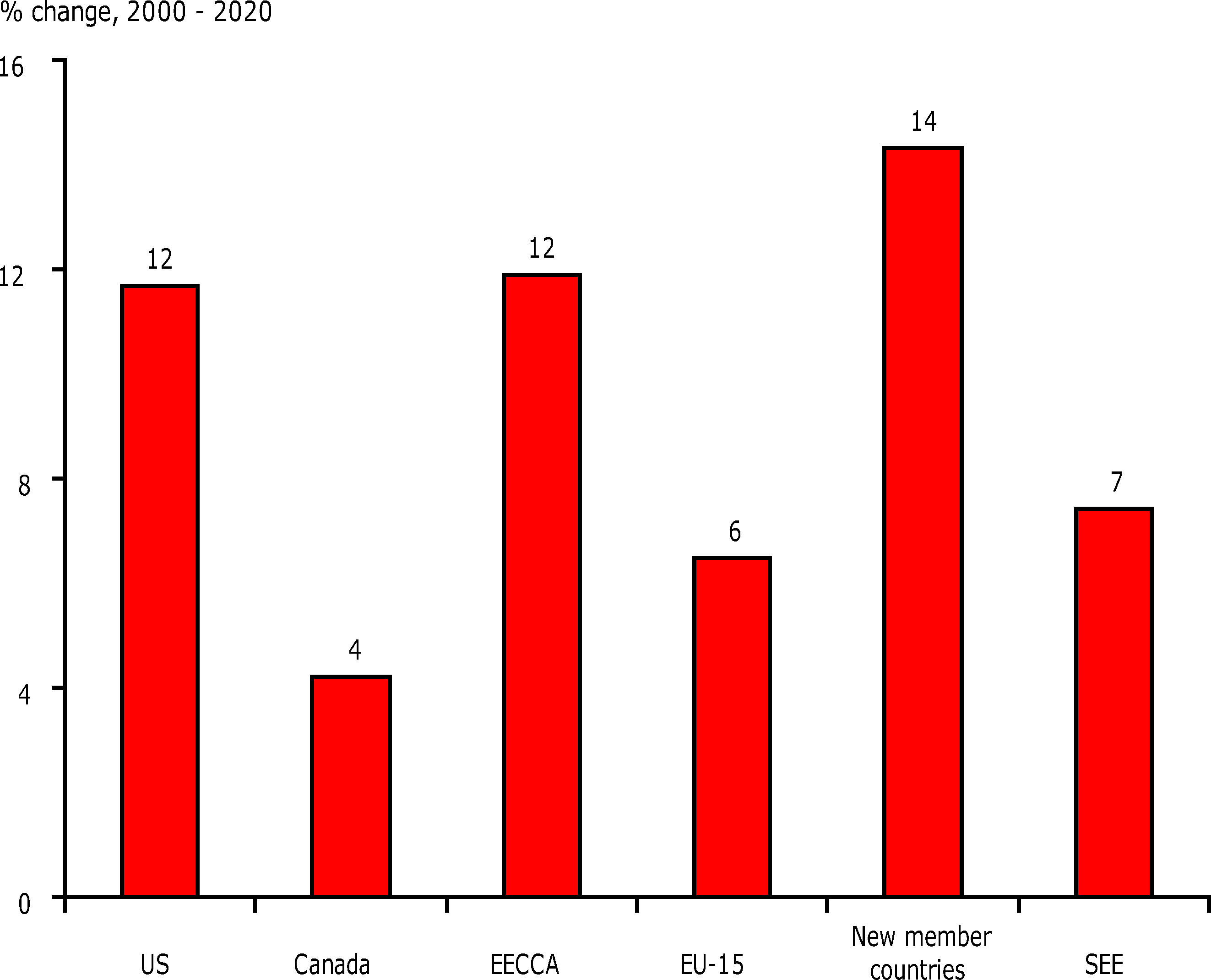 EECCA: No data for TJ all years, no data for MO year 2000, AM, GE, TM, UZ, UA no date for 2020 year, i.e. for thise year 2010 figures have been considered for AM, GE, TM, UZ and year 2015 for UA.