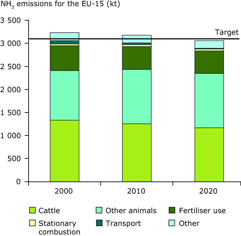 See all EU institutions and bodiesThe NH3 2010 emission ceiling under the NEC directive for the EU-15 is 3 110 kt.
