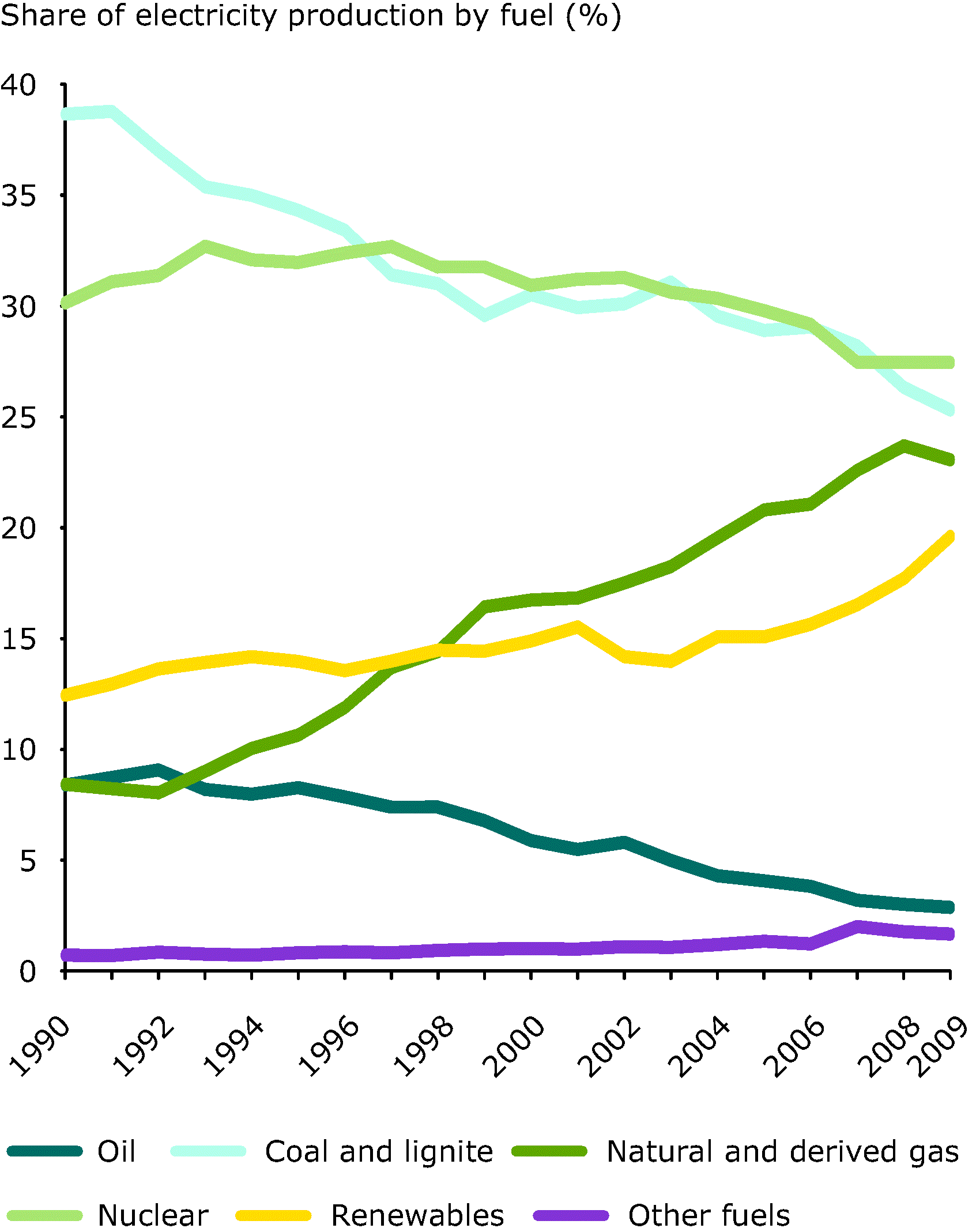 Electricity produced from pumping in hydro power plants is not considered a renewable source of energy and it is not shown in the chart.