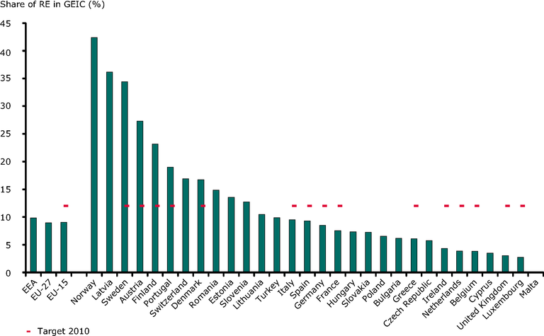 Target White Paper on Renewable energy : 12% of renewable in GEIC in 2010 (EU-15)