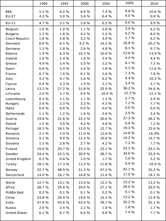 For references, please go to https://www.eea.europa.eu/data-and-maps/figures/share-of-renewable-energy-in-3 or scan the QR code.