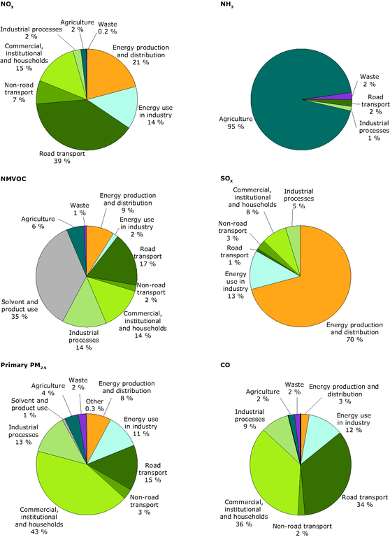 Sources of selected air pollutants in 2008 for EEA-32 and Western Balkan countries