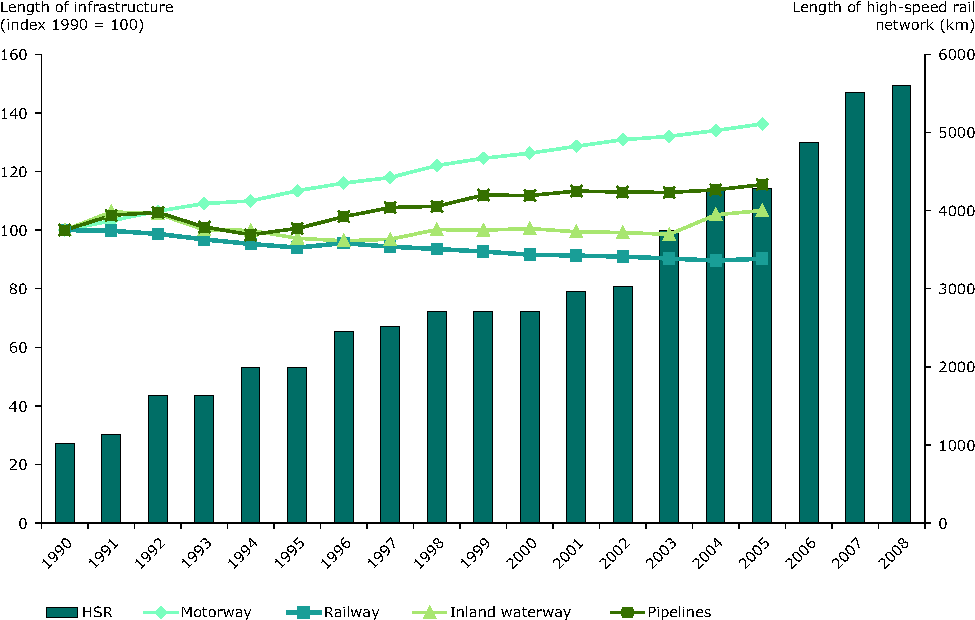 Norway's pipeline data is excluded due to data revisions made for the major part of the current decade. However, data is included for this country for Motorways, rail and IWWs.
