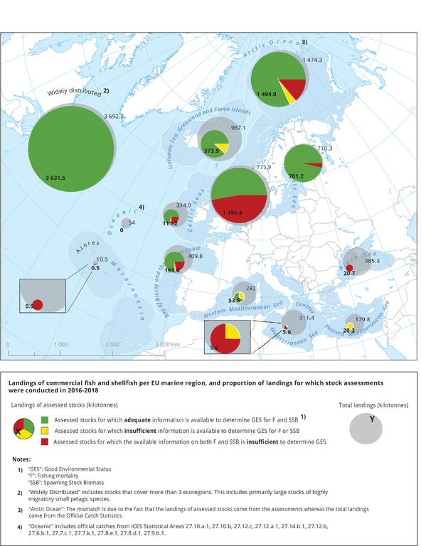 Landings information for the North-East Atlantic and the Baltic Sea is based on the International Council for the Exploration of the Sea (ICES) Official Nominal Catches, 2006-2016 dataset. Landings information for the Mediterranean Sea and the Black Sea is based on the Food and Agriculture Organization (FAO) capture production dataset. The figure is based on 2016 data.