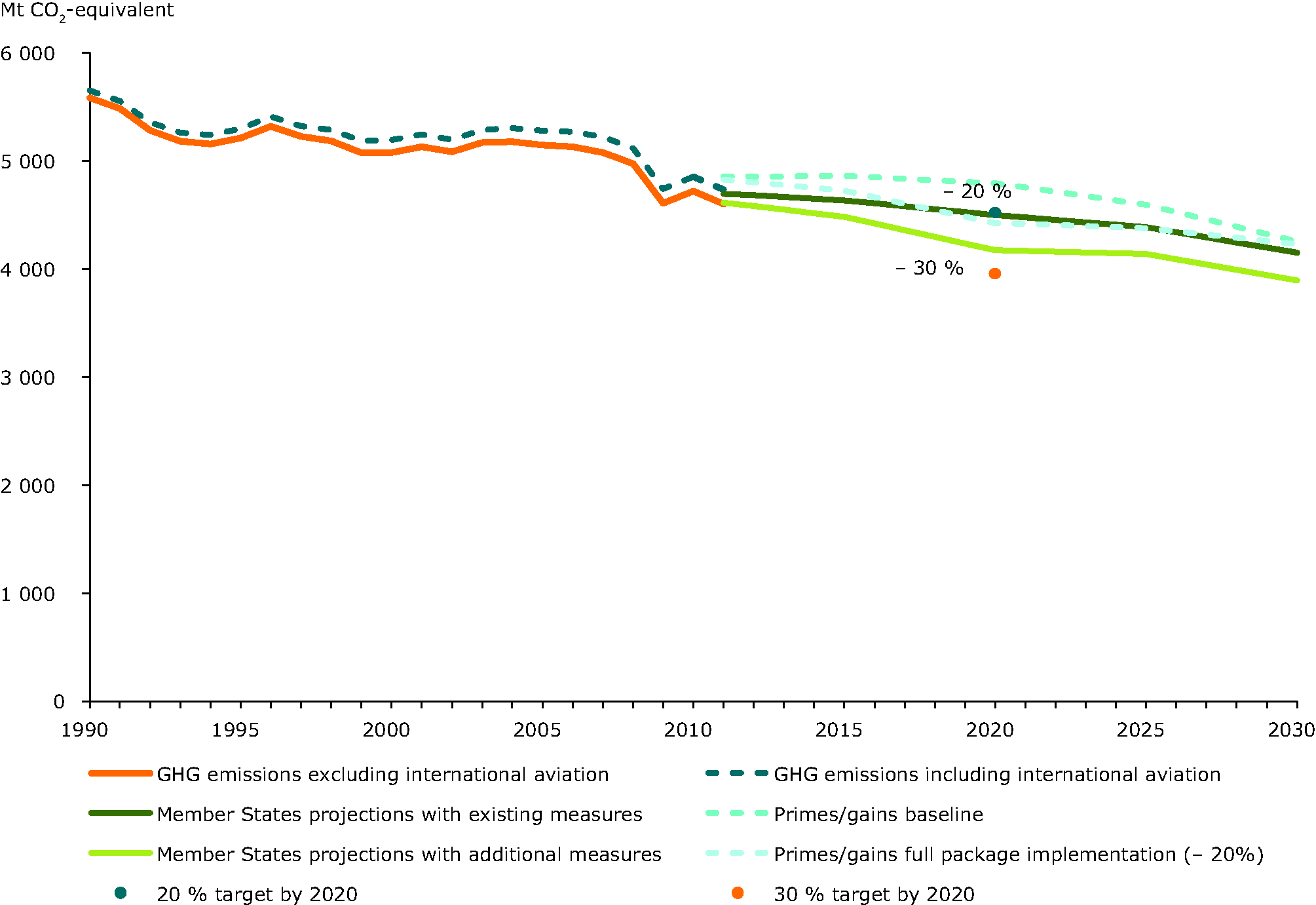 Member State projections do not include international aviation, while the PRIMES/GAINS scenarios do.