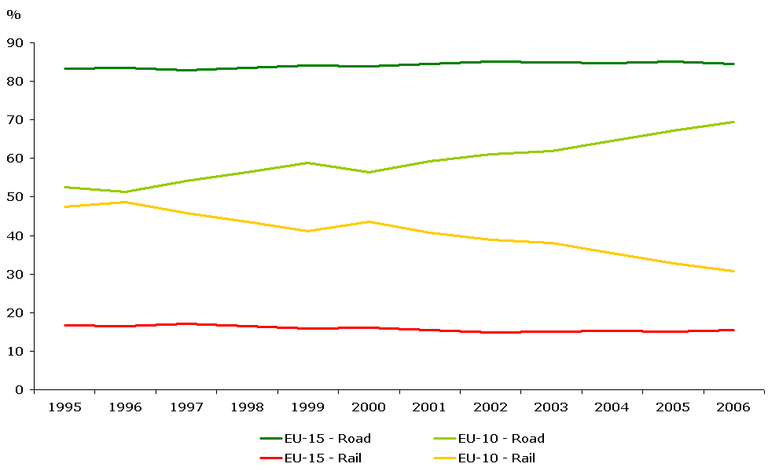 Because a significant number of vehicles from EU-10 Member States perform transport services in EU-15 Member States the numbers for EU-10 Member States in particular are uncertain, albeit the trend is expected to be correct. No data available for Cyprus and Malta.