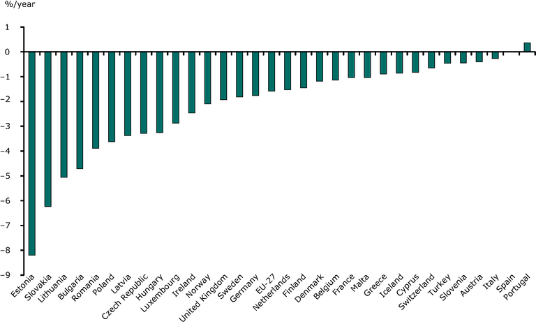 For references, please go to https://www.eea.europa.eu/data-and-maps/figures/variation-of-final-energy-intensity or scan the QR code.