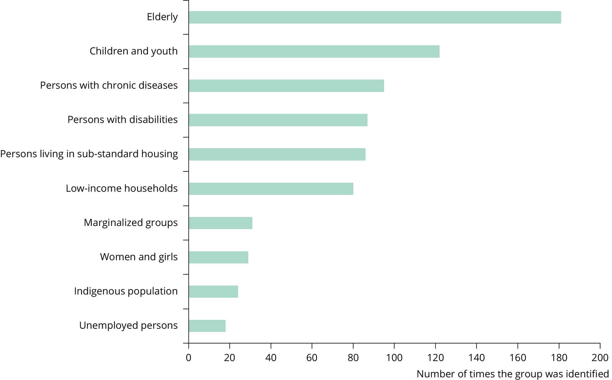 Notes: The same group could be identified in relation to multiple climate-and weather-related hazards. Based on reporting of 98 cities from 22 EEA member and collaborating countries to CDP.