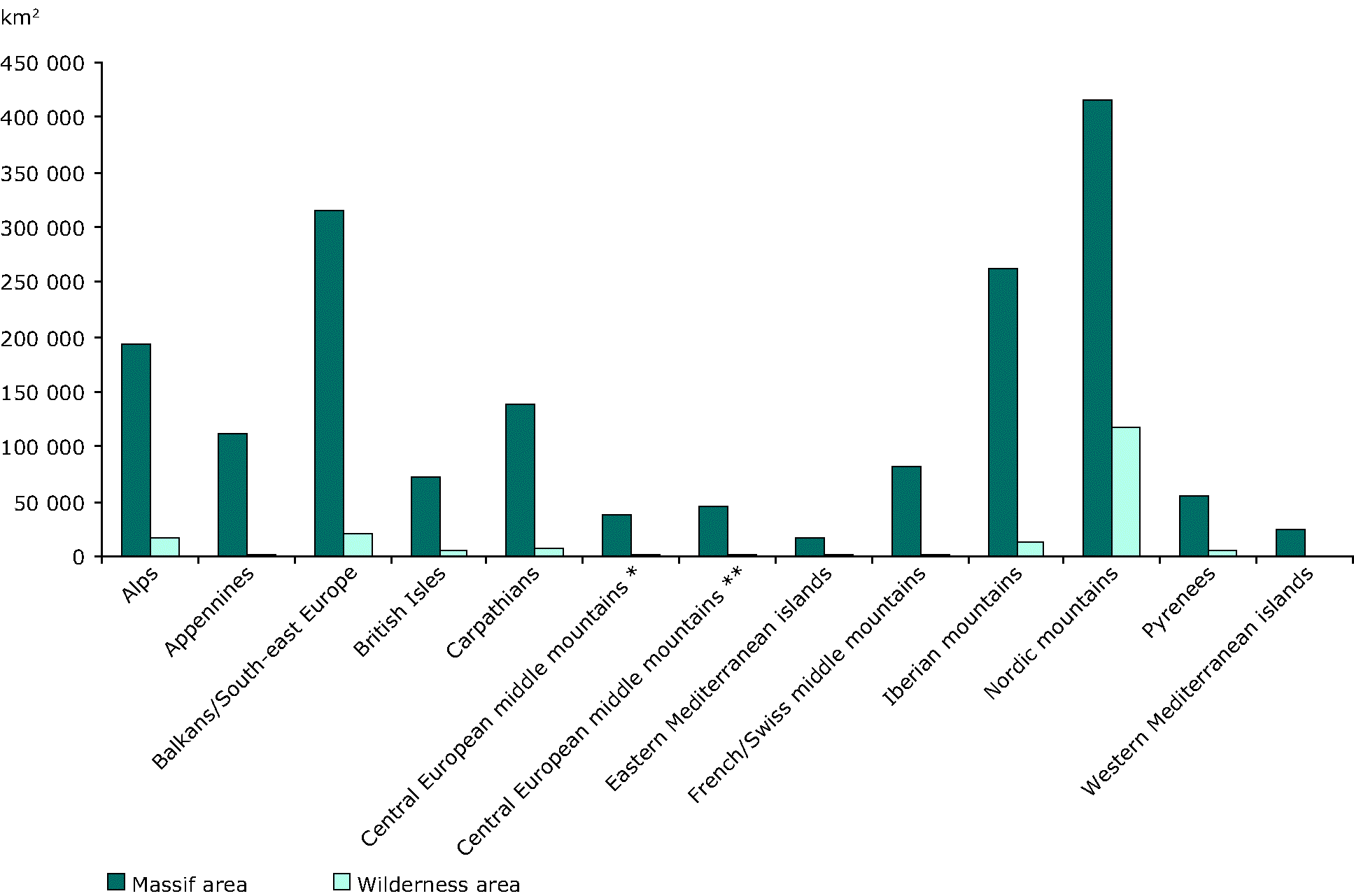 For references, please go to https://www.eea.europa.eu/data-and-maps/figures/wilderness-comparison/massifs-comparison-of-area-and or scan the QR code.