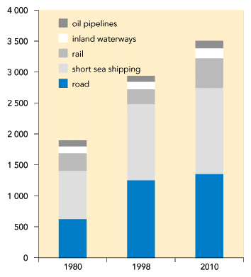 3. Freight transport by mode, 1980, 1998 and 2010 projection