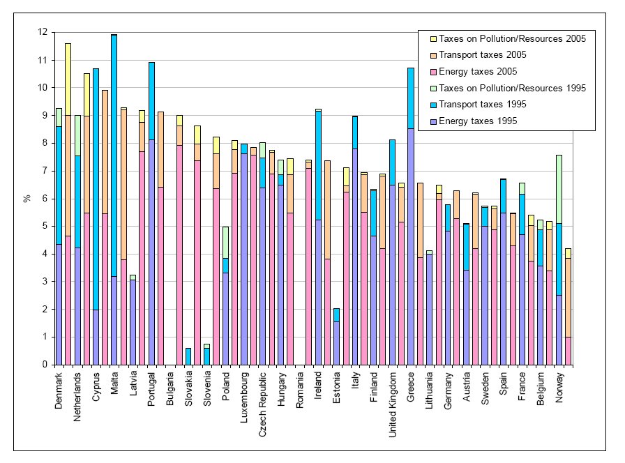 3. Share of environmental taxes in total tax revenue in 1995 and 2005