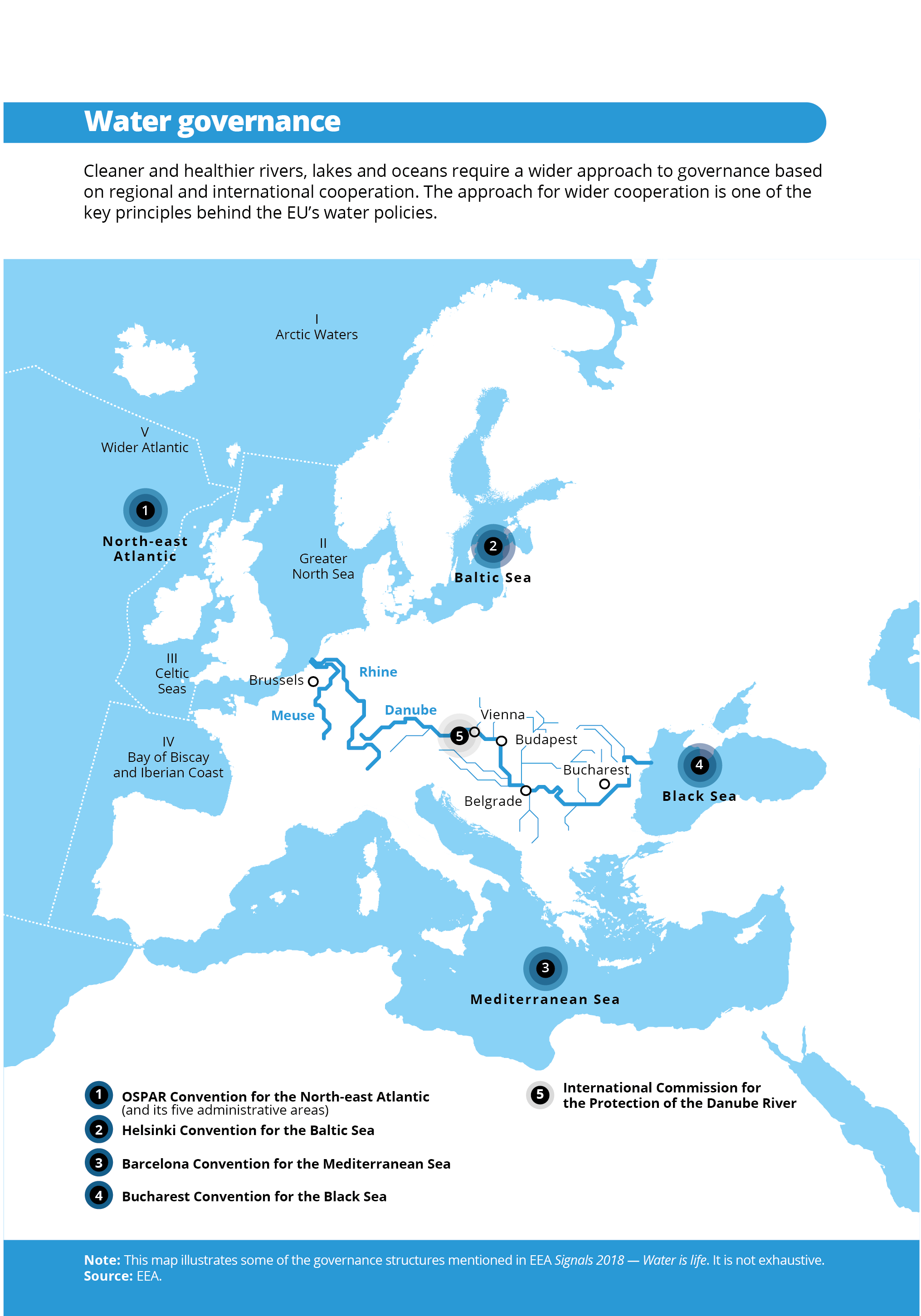 The cooperation around the Danube is one of the oldest initiatives of transboundary water management, dating back to the late 1800s. Over time, the focus has shifted from navigation to environmental issues such as pollution and water quality. Today, the initiatives to ensure the sustainable use and management of the Danube are coordinated around the International Commission for the Protection of the Danube River (ICPDR), which brings together 14 cooperating states (EU and non-EU alike) and the EU itself, with a mandate over the whole Danube river basin, which includes its tributaries as well as groundwater resources. The ICPDR is recognised as the body responsible for developing and implementing the river basin management plan for the Danube. There are similar governance bodies for other international river basins in the EU, including the Rhine and the Meuse.